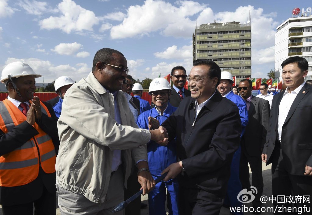 ????新華網(wǎng)北京5月6日電 據(jù)中國(guó)政府網(wǎng)微博報(bào)道,當(dāng)?shù)貢r(shí)間5日下午,李克強(qiáng)在埃塞俄比亞總理海爾馬里亞姆陪同下,參觀中方承建的亞的斯亞貝巴輕軌項(xiàng)目。他對(duì)工人說(shuō),埃塞俄比亞是東非乃至非洲的高地,你們一定要確保質(zhì)量,打出品牌,建成中國(guó)裝備、鐵路走出去的高地,讓非洲人民受益。