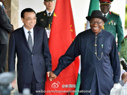 ????新華網(wǎng)北京5月7日電 據(jù)新華社“新國際”微博報道,李克強總理7日與尼日利亞總統(tǒng)喬納森舉行會談。喬納森說:尼日利亞不久前遭受恐怖主義襲擊,安全形勢嚴峻!絕大多數(shù)國家領導人不愿意這個時候訪問尼日利亞,感謝您這次如期到訪,展現(xiàn)了中國是尼日利亞真正的朋友,患難見真情。
