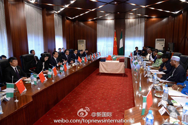 ????新華網(wǎng)北京5月8日電 據(jù)新華社“新國(guó)際”微博報(bào)道,李克強(qiáng)總理7日與尼日利亞總統(tǒng)喬納森會(huì)談。喬納森感謝李克強(qiáng)在尼安全形勢(shì)嚴(yán)峻的情況下如期到訪,是患難見(jiàn)真情。李克強(qiáng)表示中方將對(duì)尼提供各種支持和幫助,同時(shí)希望尼方切實(shí)加強(qiáng)對(duì)在尼中國(guó)公民的保護(hù)。目前中國(guó)在尼有6.5萬(wàn)人,是我在非人員最多的國(guó)家之一。