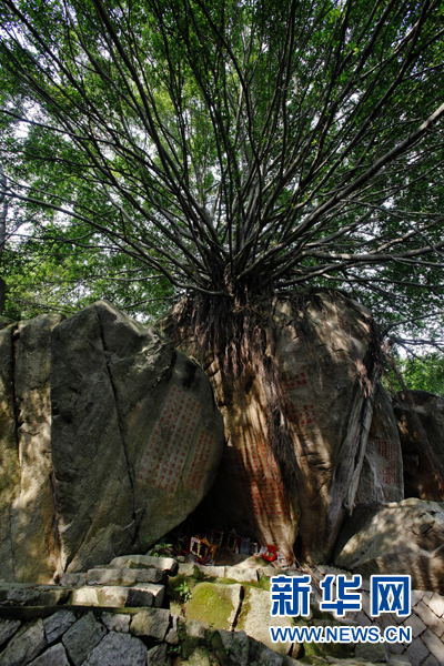 5月8日拍攝的九日山石刻與榕樹。 新華社記者 沈伯韓 攝