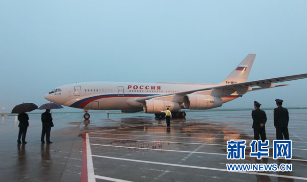 ??? 5月20日,俄羅斯聯(lián)邦總統(tǒng)普京抵達上海,開始對中國進行為期兩天的國事訪問并出席在上海舉行的亞洲相互協(xié)作與信任措施會議第四次峰會。這是普京乘坐的專機抵達上海虹橋國際機場。 新華社記者 裴鑫 攝