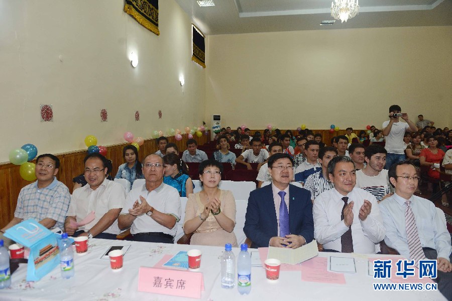 6月9日,烏茲別克斯坦首都塔什干的烏世界語言大學(xué)禮堂活動現(xiàn)場。?
