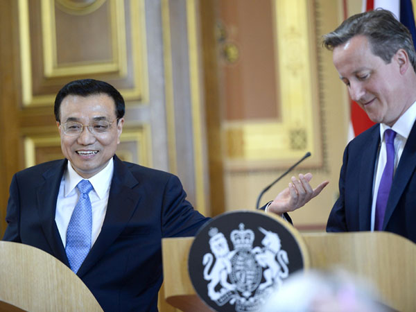 ????在頗有古典特色的英國外交部大樓內(nèi),中國國務院總理李克強與英國首相共同見證了兩國間一系列合作文件的簽署。