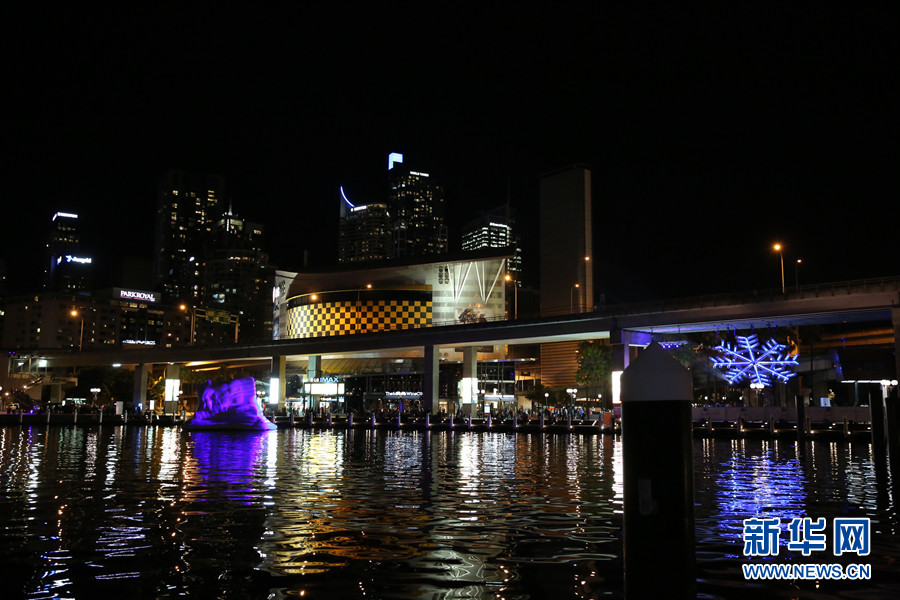 ????6月13日起,為期1個(gè)月的大型冬季冰雪活動在悉尼市中心的情人港(Darling Harbour)為悉尼市民冬季的生活增添了些許名副其實(shí)的冬季氣氛。圖為悉尼情人港被雪白的冰山和雪花裝點(diǎn),在夜晚燈光的點(diǎn)綴下生動熠熠。新華社記者 李冰 攝