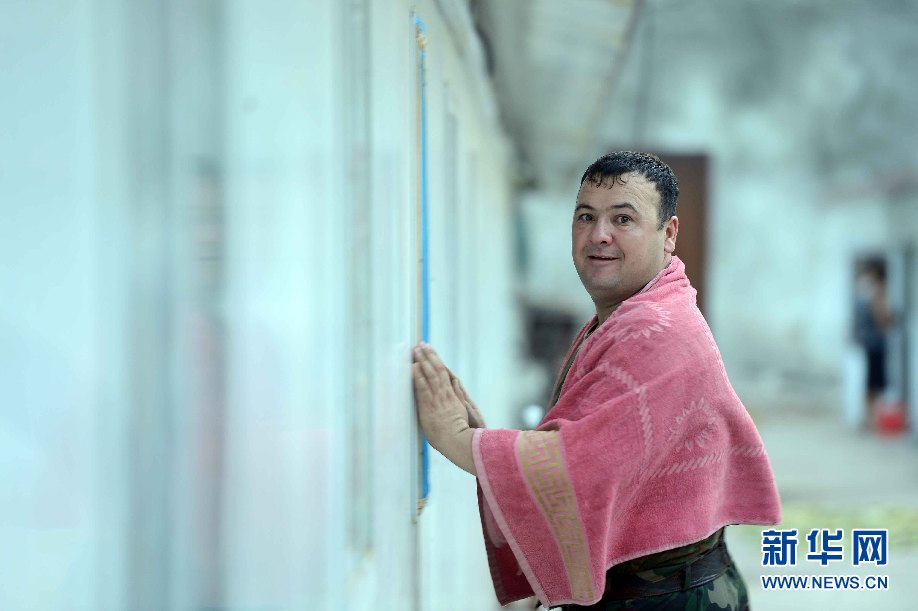 ????7月5日,烏茲別克斯坦安革連至琶布鐵路隧道項目安革連隧道進口西口分部,一名烏茲別克員工下班后在生活區(qū)。(沙達提 攝)