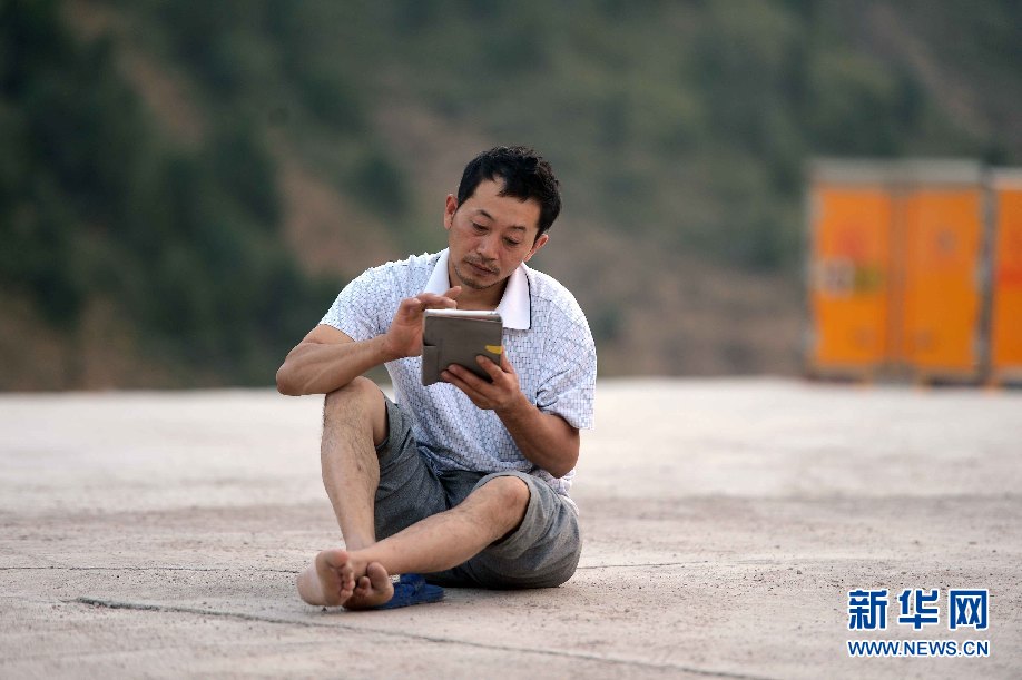 ????7月5日,烏茲別克斯坦安革連至琶布鐵路隧道項(xiàng)目安革連隧道進(jìn)口西口分部,幾名員工在與家人通電話。(沙達(dá)提 攝)