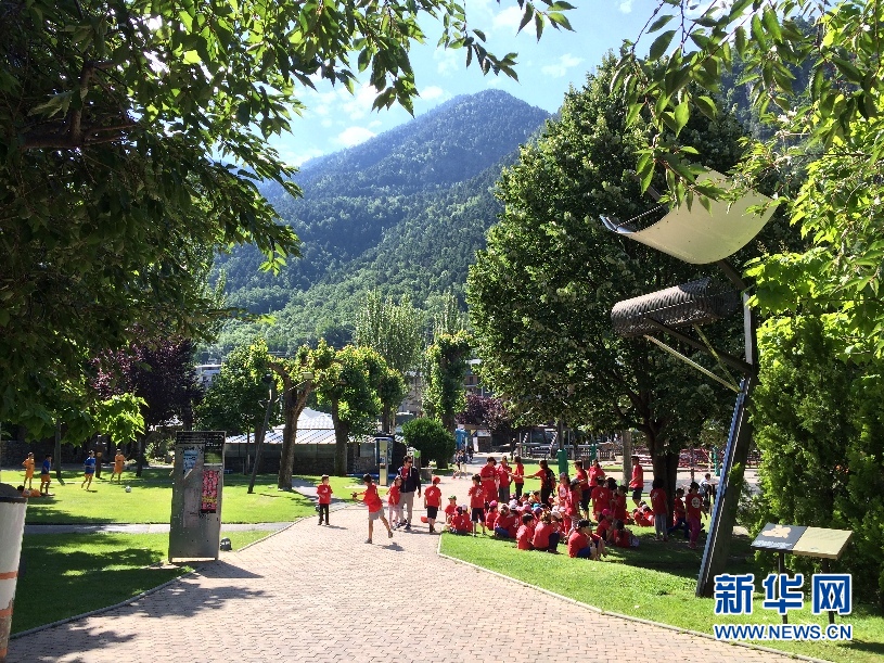 ????一群學生在安道爾城的一個公園里進行活動。(周喆 攝)
