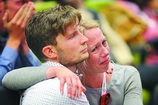 7月20日,在澳大利亞墨爾本,兩名與會(huì)代表在大會(huì)開幕式上相擁而泣。當(dāng)日,第20屆國際艾滋病大會(huì)在澳大利亞第二大城市墨爾本開幕,一萬多名與會(huì)者在開幕式上集體悼念6名在馬航MH17航班墜毀事件中遇難的抗艾專家。新華社記者 徐儼儼攝