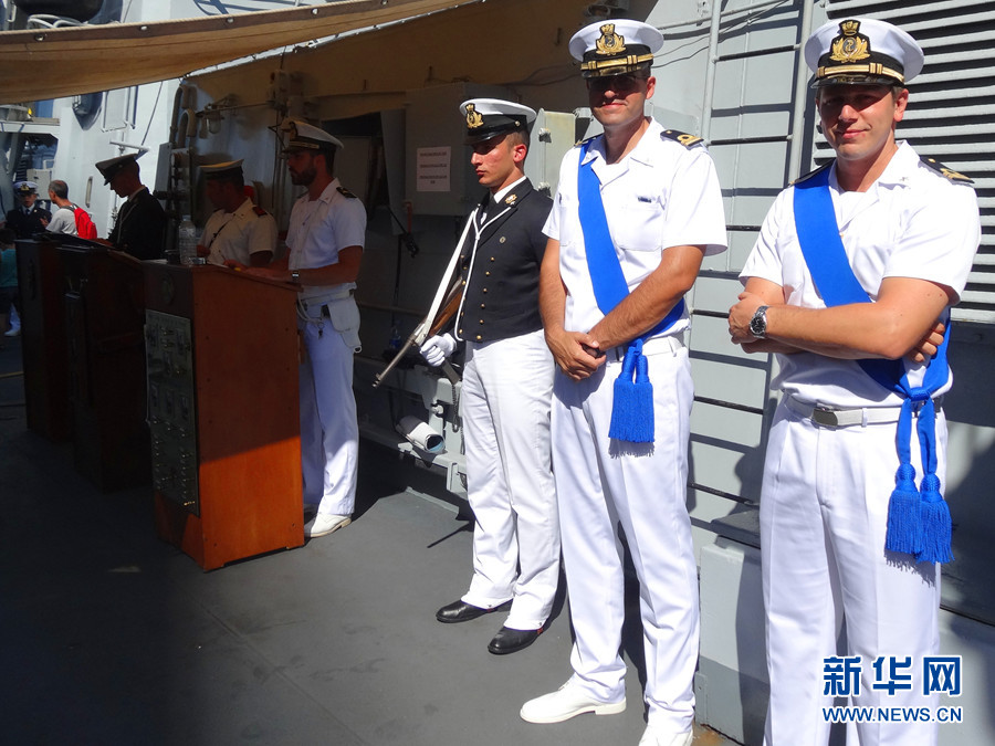????“路易吉·杜蘭德·德拉佩訥號”驅逐艦上的工作人員。新華網(wǎng)記者 周喆 攝