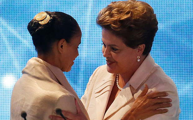 ????其實(shí),席爾瓦的政治生涯也極具戲劇性并充滿意外。起先參與政治活動(dòng)的她,后來又成了一名環(huán)境保護(hù)主義者;在擔(dān)任多年的國會(huì)議員后,她于2003年在盧拉政府中出任環(huán)境部長。2009年8月前,席爾瓦與羅塞夫同屬勞工黨;2010年,席爾瓦代表綠黨參選總統(tǒng)并落選。在今年的巴西總統(tǒng)選舉中,加入社會(huì)黨的席爾瓦本來是作為副總統(tǒng)競選人陪伴坎波斯,但由于坎波斯在8月份墜機(jī)身亡,席爾瓦在黨內(nèi)被選為總統(tǒng)競選人。