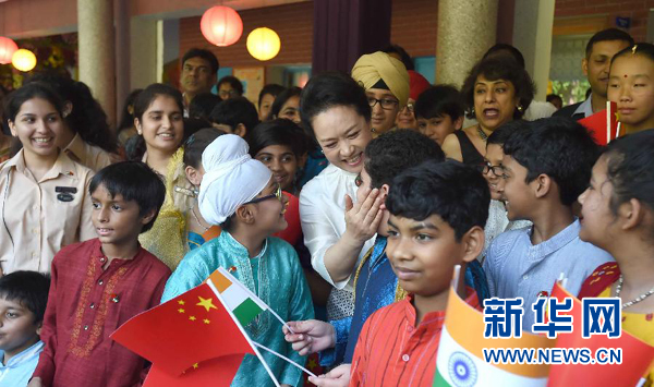 ????參觀結(jié)束時,彭麗媛向?qū)W校贈送了中文圖書、教學(xué)光碟和文具,同師生親切合影,擁抱、親吻孩子們。彭麗媛說,我會記住孩子們的笑容。歡迎大家多到中國走走看看,增進(jìn)彼此了解,把中印友好永遠(yuǎn)傳承下去。