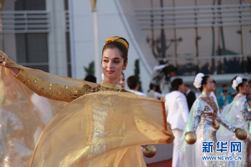 身著節(jié)日盛裝的土庫曼斯坦美女在跳舞 記者 盧敬利攝