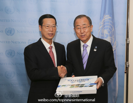 ????新華網(wǎng)北京9月23日電 據(jù)新華社“新國(guó)際”微博報(bào)道,國(guó)家主席習(xí)近平特使、國(guó)務(wù)院副總理張高麗22日在聯(lián)合國(guó)總部與聯(lián)合國(guó)秘書(shū)長(zhǎng)潘基文共同出席中國(guó)政府向聯(lián)合國(guó)捐贈(zèng)30米分辨率全球地表覆蓋數(shù)據(jù)儀式。張高麗表示,中國(guó)政府正式將世界上首套30米分辨率全球地表覆蓋數(shù)據(jù)捐贈(zèng)給聯(lián)合國(guó),這是為即將舉行的氣候峰會(huì)帶來(lái)的一份禮物。