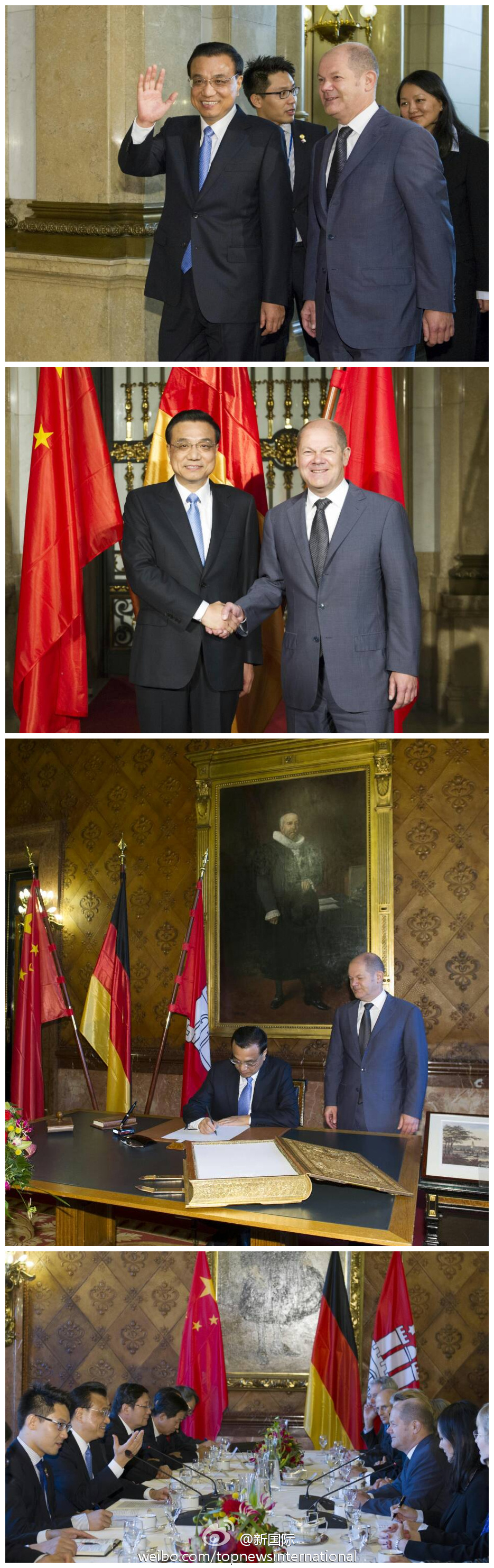 ????新華網北京10月12日電 據(jù)新華社“新國際”微博報道,李克強總理11日在德國漢堡會見市長肖爾茨時說,漢堡不僅是中德貿易的領頭羊,也是中國企業(yè)落戶最多的歐洲城市。希望漢堡在落實《中德合作行動綱要》過程中走在前列,與中方在自由貿易、鐵路運輸、新能源、清潔能源、媒體等方面加強合作。