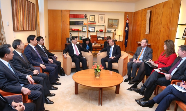 兩國領(lǐng)導(dǎo)人決定將中澳關(guān)系提升為全面戰(zhàn)略伙伴關(guān)系;同時宣布實質(zhì)性結(jié)束中澳自由貿(mào)易協(xié)定談判。