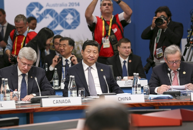 ????(2014年11月15日,國家主席習近平出席二十國集團領(lǐng)導人第九次峰會并發(fā)表重要講話。新華社發(fā))