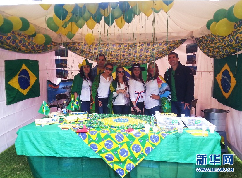 ????“桑巴軍團(tuán)”的攤位布置讓人覺(jué)得仿佛又回到了世界杯。(新華網(wǎng)記者 梁君茜 攝)