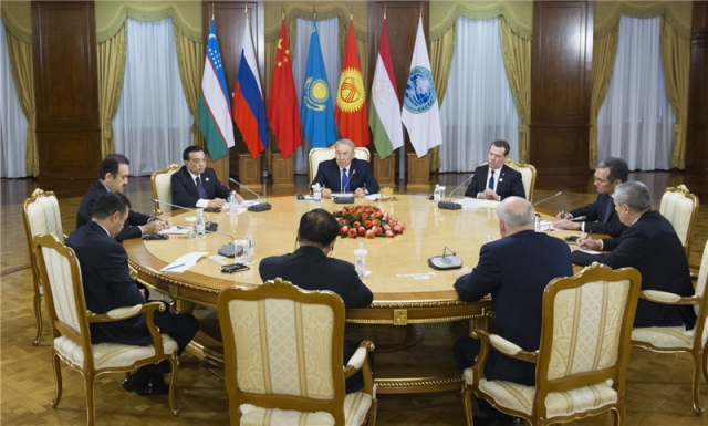 ????(納扎爾巴耶夫總統(tǒng)集體會見上合組織成員國總理、秘書長和地區(qū)反恐機構執(zhí)委會主任,攝影記者:黃敬文)