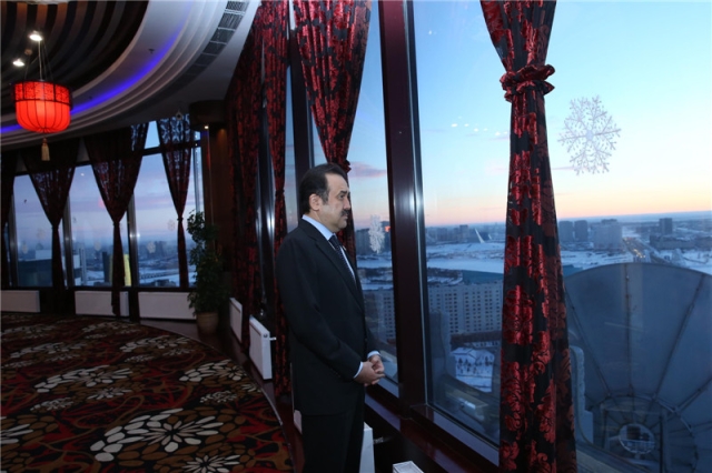 ????站在大廈23層的旋轉餐廳,阿斯塔納城盡收眼底,這里適合登高遠眺。
