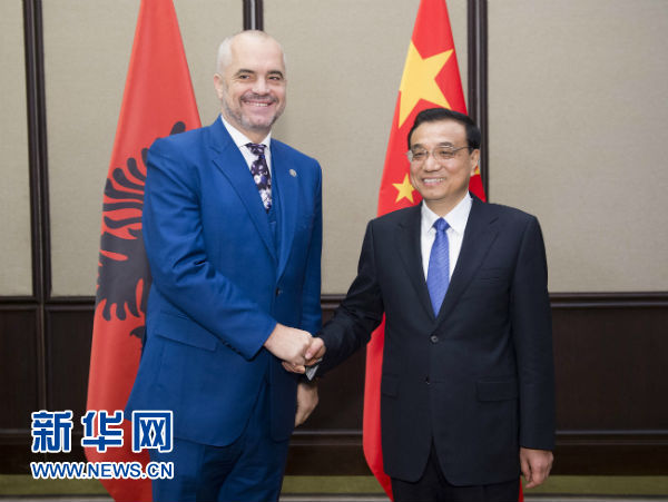 ??? 12月17日,中國(guó)國(guó)務(wù)院總理李克強(qiáng)在貝爾格萊德會(huì)見(jiàn)阿爾巴尼亞總理拉馬。 新華社記者黃敬文攝