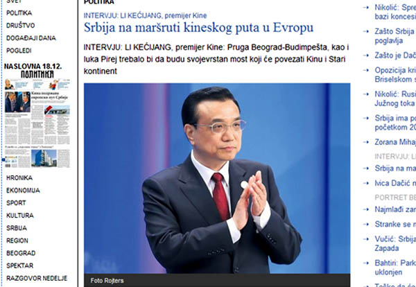 此外,塞爾維亞《政治報》網(wǎng)站刊文《中塞關系就像高速列車》,透露李克強和武契奇總理將共同為由中國專家建設的跨多瑙河大橋通車剪彩,并有望商談新的基建項目。塞爾維亞國家廣播電視臺RTS刊文《貝爾格萊德峰會,加強經(jīng)濟關系》稱,近三十年時間里,中國總理將首訪塞爾維亞,中塞兩國總理將共同成為中國-中東歐國家領導人會晤的東道主。新的絲綢之路設想是為了加強中亞各國的聯(lián)系,而這條路也把中國帶到了巴爾干半島。