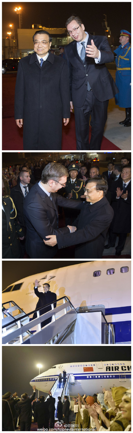 ??? 李克強總理當(dāng)?shù)貢r間18日傍晚乘專機離開塞爾維亞首都貝爾格萊德。在塞期間,李克強出席了中國—中東歐國家領(lǐng)導(dǎo)人第三次會議并成功對塞爾維亞進行了首訪。塞爾維亞總理武契奇率兩位副總理和多位部長到機場送行。