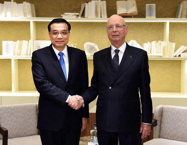 不顧旅途勞頓,克強總理剛下榻酒店就會見了施瓦布,并應(yīng)邀出席小范圍晚宴。