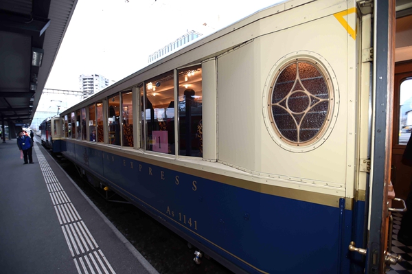 前往達沃斯通常乘坐的紅色窄軌小火車很有特色??藦娍偫泶舜纬俗膶A惺侨鸱借F路公司專門用于租借的,充當(dāng)過不少國家領(lǐng)導(dǎo)人的專列,顏色不同于普通小火車的紅色,而是藍白配色的。