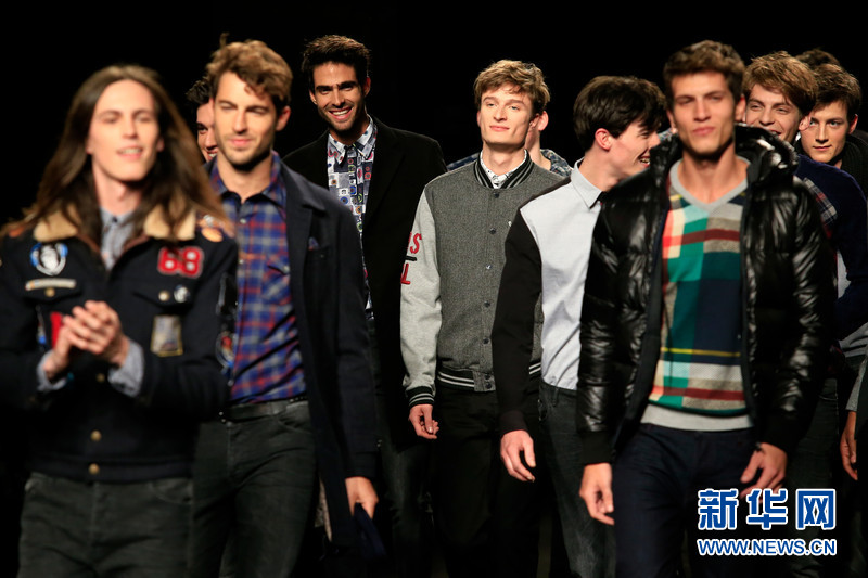 ????西班牙本土品牌Desigual3日在第15屆“080巴塞羅那時(shí)裝展”(080 Barcelona Fashion)上推出了自己的新款男裝。一水兒的型男帥哥走在T臺上,也是一道別樣的風(fēng)景。(保·巴雷納 攝)????