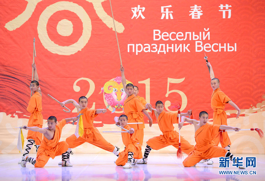 ????新華網(wǎng)塔什干2月6日電(記者 沙達(dá)提)2月4日晚,在烏茲別克斯坦首都塔什干突厥宮,藝術(shù)家在表演中國(guó)武術(shù)。由中國(guó)文化部、中國(guó)駐烏茲別克斯坦大使館、烏外交部、烏文化體育部和塔什干市政府共同聯(lián)辦、河南省文化廳攜鄭州歌舞劇院、登封市少林塔溝武術(shù)學(xué)校承辦的2015“歡樂春節(jié)”中亞行演出4日至5日在塔什干突厥宮分別為烏茲別克斯坦政府官員、各界友好人士、駐烏使節(jié)和旅烏各族華僑華人、維吾爾文化中心、東干文化中心及中資企業(yè)、教師和留學(xué)生代表近1600余人獻(xiàn)上充滿濃郁中國(guó)特色的文化藝術(shù)盛宴。