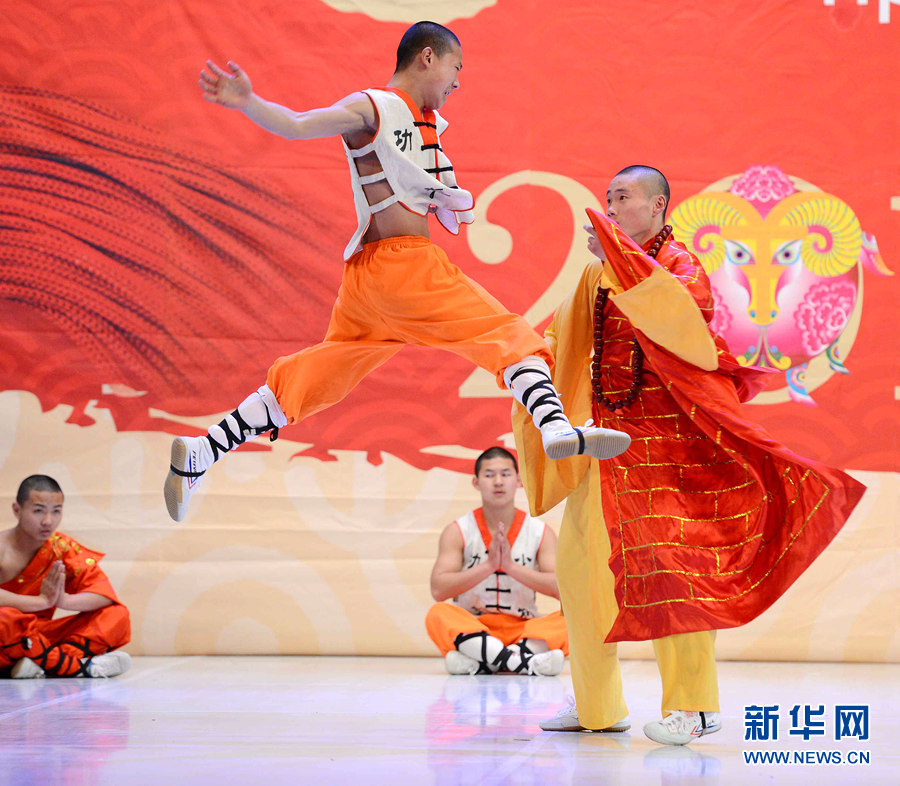 2月4日晚,在烏茲別克斯坦首都塔什干突厥宮,藝術(shù)家在表演中國武術(shù)和舞蹈。新華網(wǎng)記者 沙達(dá)提 攝