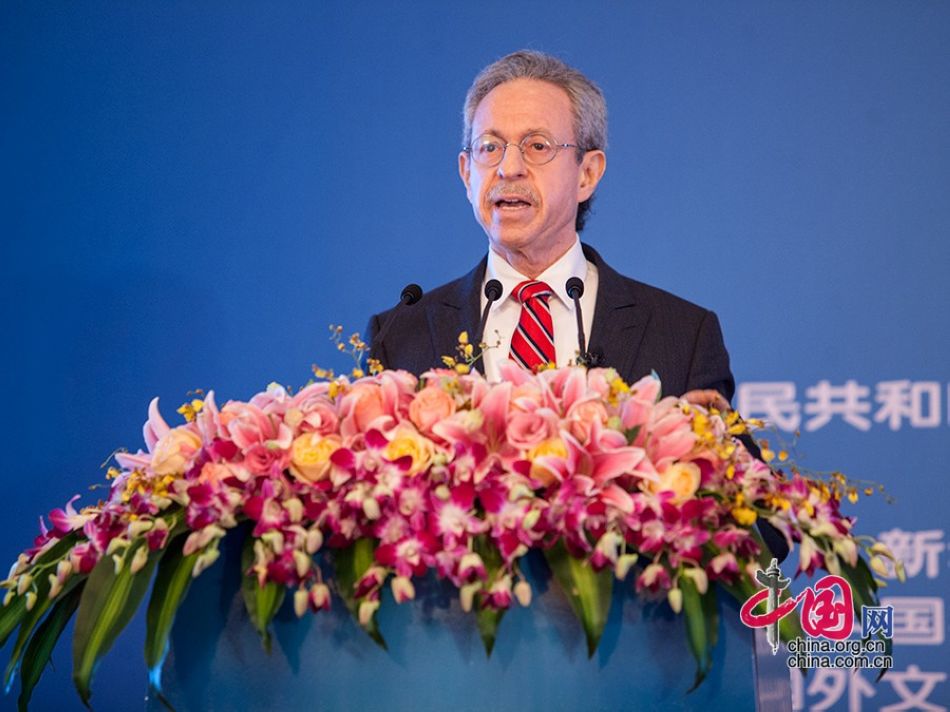 圖為美國庫恩集團主席庫恩在“21世紀(jì)海上絲綢之路國際研討會”高峰論壇發(fā)表演講。中國網(wǎng)記者 鄭亮 攝