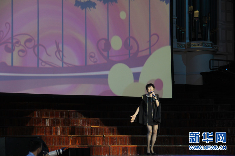 ??????? 2月25日,由中國(guó)國(guó)務(wù)院僑辦和中國(guó)海外交流協(xié)會(huì)聯(lián)合主辦的“文化中國(guó)·四海同春”在悉尼舉辦大洋洲團(tuán)的首場(chǎng)演出,歌手成方圓、中國(guó)好聲音學(xué)員李維、周深等國(guó)內(nèi)知名表演者和中澳藝術(shù)團(tuán)體為當(dāng)?shù)厝A僑華人送來新春祝福。圖為東方歌舞團(tuán)著名歌手成方圓演唱《童年》。新華社記者趙小娜攝