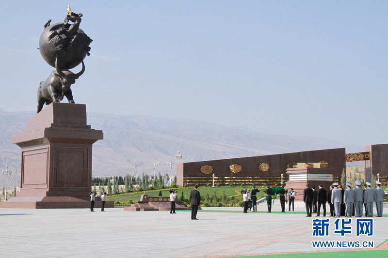 土庫(kù)曼斯坦總統(tǒng)和內(nèi)閣成員向地震紀(jì)念碑獻(xiàn)花。(新華網(wǎng)記者 盧敬利 攝)