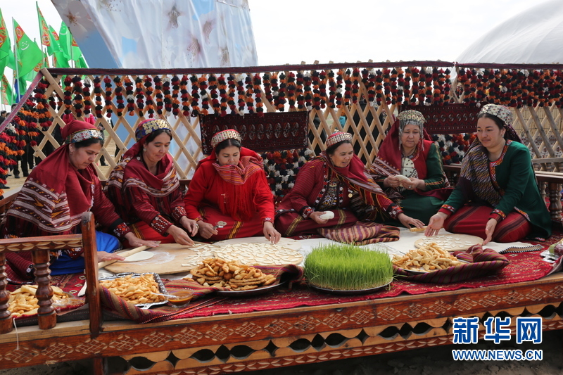 ????以往過著游牧和半游牧生活的人們在冰雪消融、牲畜產(chǎn)仔的時節(jié),都會以這一傳統(tǒng)佳節(jié)歡慶新生活。 21日上午,在阿什哈巴德以東40來公里處專門為節(jié)日搭建的場地上,土庫曼斯坦內(nèi)閣、外交使節(jié)、民眾和學生參加了隆重的慶?;顒印;顒又?,青年男女、學齡前兒童載歌載舞,民眾和藝術(shù)家展示傳統(tǒng)的編織和手工藝術(shù),青年男女高高地蕩起秋千,汗血寶馬進行馬技表演,土庫曼咬狼犬、羊群和駱駝或圍在欄子里,或被主人牽在手中,展現(xiàn)出游牧民族的生活景象。