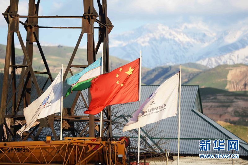 烏茲別克斯坦安格連(市)電廠煙囪施工現(xiàn)場。新華網(wǎng)發(fā) 記者沙達(dá)提 攝