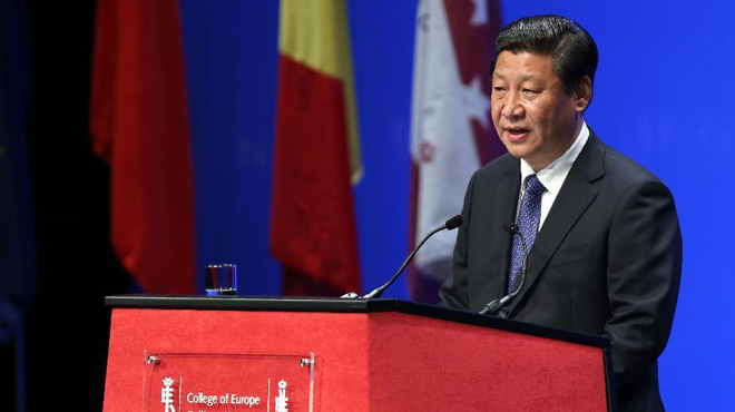 2014年4月1日,國家主席習(xí)近平在比利時(shí)布魯日歐洲學(xué)院發(fā)表重要演講。新華社記者龐興雷攝