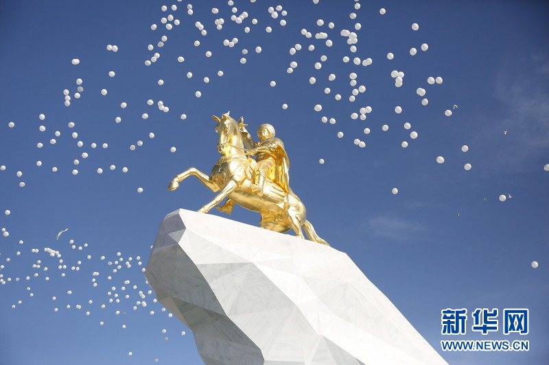 土庫曼斯坦總統(tǒng)金像落成 路中央雕塑成時尚(高清組圖)