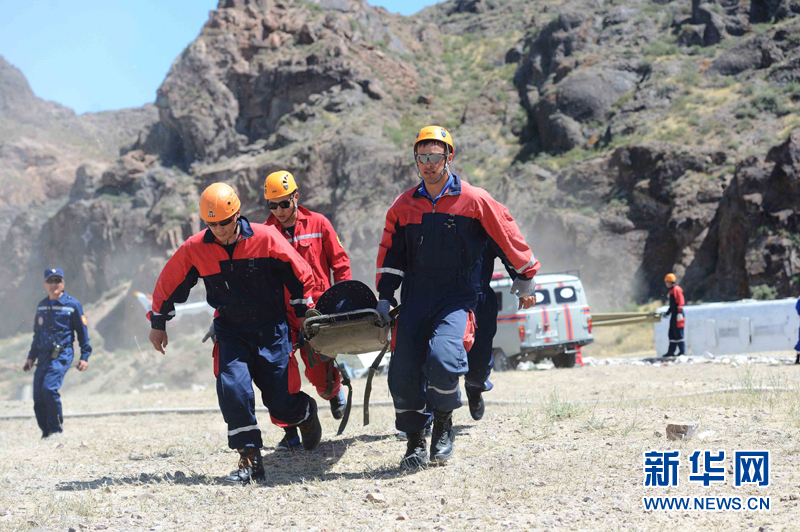 6月3日,代表中國參加上合組織國際救援聯(lián)合演練的新疆消防總隊隊員在哈薩克斯坦阿拉木圖州塔姆卡壘塔斯景區(qū)的哈內(nèi)務(wù)部緊急情況委員會教練基地“巖石城-阿斯塔納”參加演練。新華社記者沙達提攝