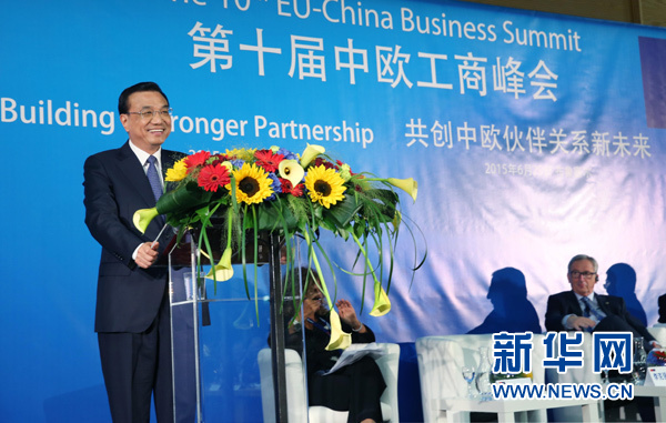當(dāng)?shù)貢r間6月29日,國務(wù)院總理李克強在布魯塞爾與歐盟委員會主席容克共同出席中歐工商峰會,并發(fā)表主旨演講。新華社記者 姚大偉攝