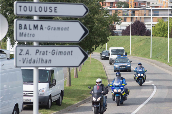圖為2015年8月1日,在法國(guó)圖盧茲近郊,載有疑似馬航MH370航班殘骸的白色貨車駛?cè)牒娇占夹g(shù)分析機(jī)構(gòu)。新華社發(fā),弗萊德·朗瑟羅攝