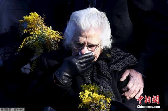 圖為一名遇難者的家屬在揭幕儀式現(xiàn)場,為逝去的親人獻花。