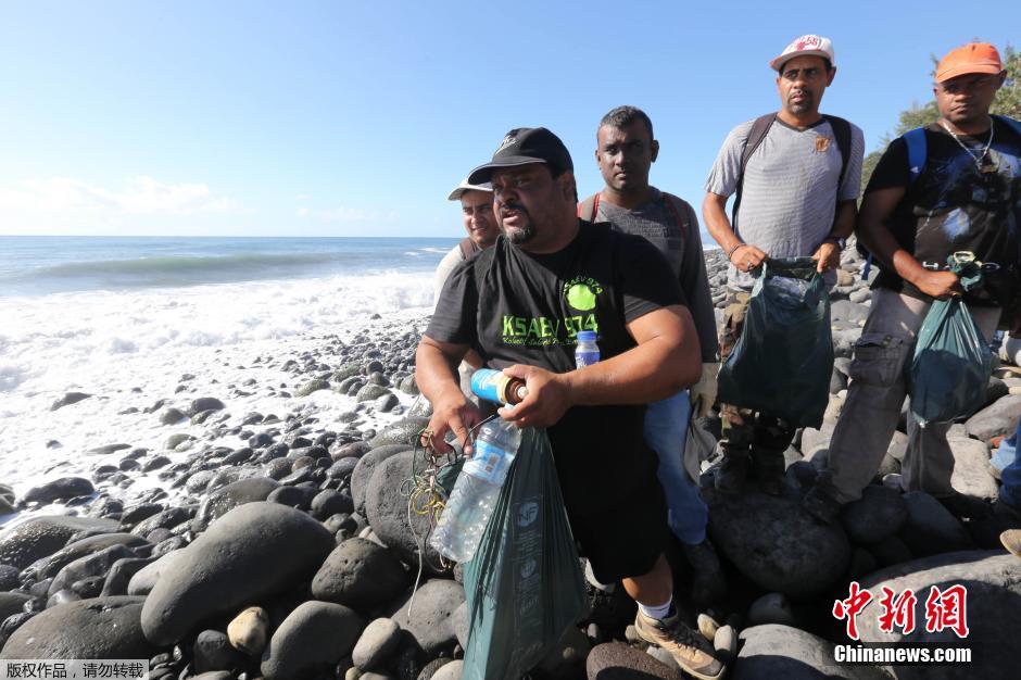 當地時間2015年8月10日,法屬留尼汪島,當地對海岸線展開搜索,繼續(xù)追蹤馬航MH370殘骸,發(fā)現了一個寫有中文字樣的礦泉水瓶子,以及以一名韓國歌手為原型的玩偶模型。