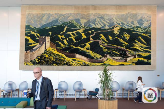 在恢復(fù)聯(lián)合國(guó)合法席位后不久的1974年,中國(guó)將一條長(zhǎng)10米、寬5米的長(zhǎng)城掛毯贈(zèng)送給了聯(lián)合國(guó)。它由天津地毯公司所屬各廠的15名織毯高手以248種色紗織成,表現(xiàn)了北京居庸關(guān)長(zhǎng)城的雄姿。40多年來,它一直高掛在聯(lián)合國(guó)代表休息北大廳里,不少來聯(lián)合國(guó)參觀的人在經(jīng)過時(shí)都忍不住駐足觀看。
