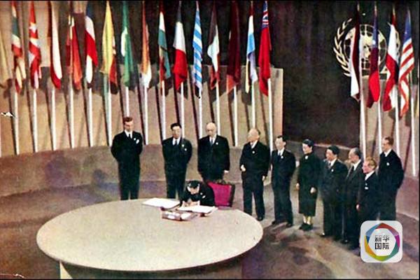????1945年6月26日,在《聯(lián)合國憲章》簽字儀式上,中國成為第一個(gè)在憲章上簽字的國家。10月24日憲章開始生效,聯(lián)合國正式成立。中國正式成為安理會(huì)常任理事國。