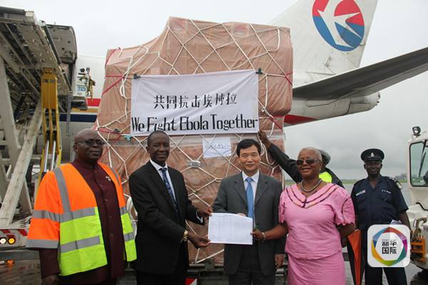 ????2014年8月11日,中國政府向塞拉利昂提供的抗擊埃博拉疫情緊急人道主義援助物資抵達(dá)塞拉利昂首都弗里敦的隆吉國際機(jī)場。新華社發(fā)
