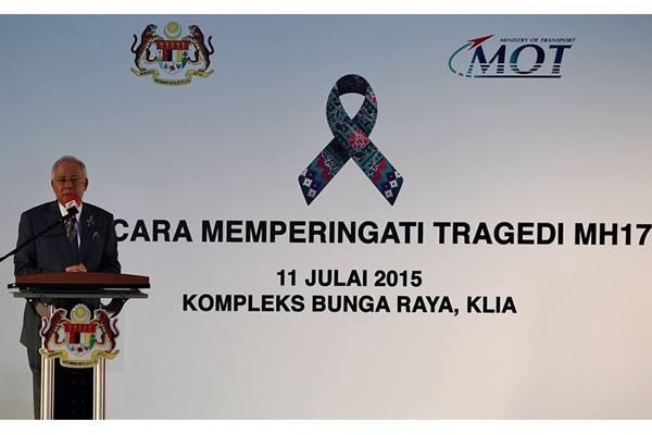 ↑2015年7月11日,馬來(lái)西亞總理納吉布在馬航MH17失事1周年紀(jì)念儀式上講話(huà)。