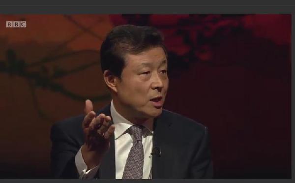 劉大使:這又回到了我們之間的根本差異問題。你們認(rèn)為英國的制度是民主的,而我們認(rèn)為中國的制度是民主的,我們稱之為中國特色的民主。英國的領(lǐng)導(dǎo)人并不是直接選舉產(chǎn)生的。中國的領(lǐng)導(dǎo)人是通過間接選舉產(chǎn)生的。我們選舉產(chǎn)生縣級人大代表,之后逐級選舉產(chǎn)生市級、省級和全國人大代表,再由全國人大代表選舉產(chǎn)生國家主席。