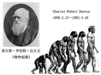 達(dá)爾文——英國(guó)生物學(xué)家、進(jìn)化論的奠基人。出版《物種起源》,提出了生物進(jìn)化論學(xué)說,從而摧毀了各種唯心的神造論以及物種不變論。除了生物學(xué)外,他的理論對(duì)人類學(xué)、心理學(xué)、哲學(xué)的發(fā)展都有不容忽視的影響。