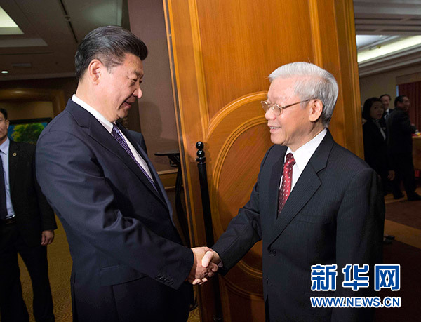 阮富仲向習(xí)近平介紹了越南革新事業(yè)取得的成績(jī)和越共十二大籌備情況。阮富仲表示,越方高度重視新形勢(shì)下黨建工作,關(guān)注中方黨建和發(fā)展社會(huì)主義經(jīng)驗(yàn),愿同中方加強(qiáng)交流合作,互學(xué)互鑒。越方贊同兩國(guó)增進(jìn)各領(lǐng)域交流合作。